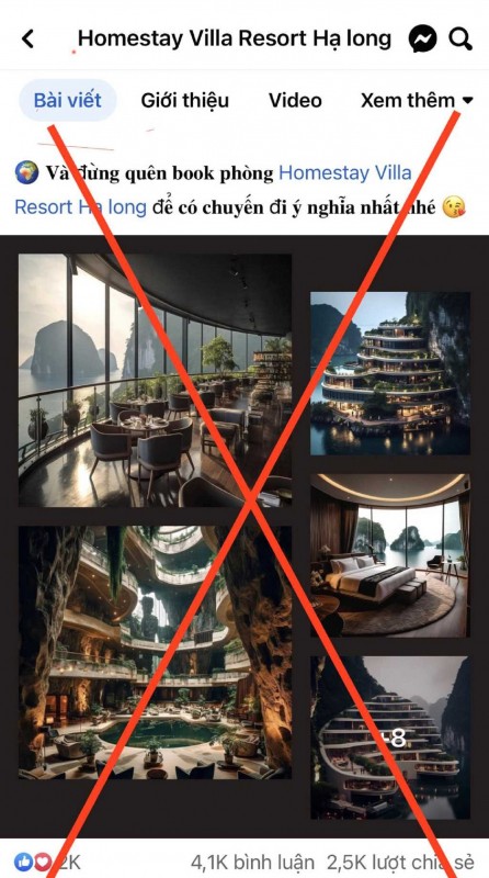 | Hình ảnh khách sạn "Fantasy Ha Long Bay" quảng bá trên mạng xã hội được xác định giả mạo. |
