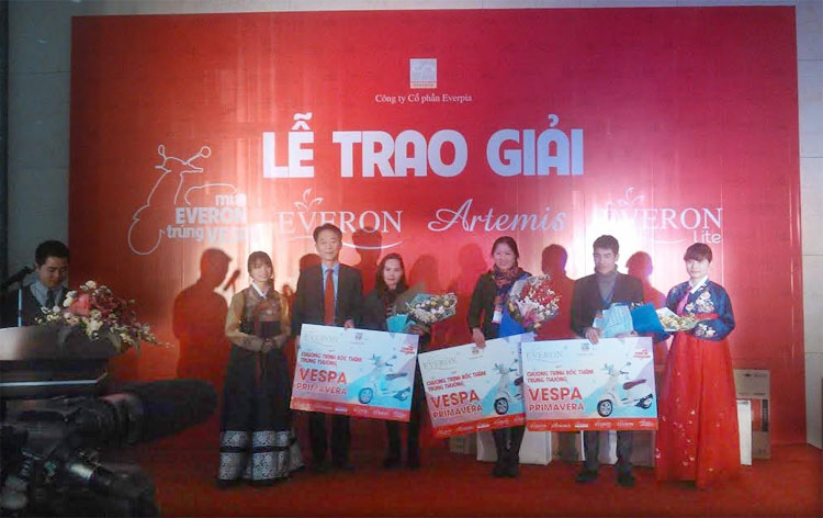 Theo đó, với mỗi hóa đơn mua hàng, khách hàng sẽ nhận một phiếu tham dự chương trình rút thăm trúng thưởng với nhiều giải thưởng giá trị lớn bao gồm 3 giải nhất: Vespa Primavera; 100 giải nhì: TV LG Led 43 inches; 100 giải ba với phần thưởng là bộ lụa cao cấp Everon. Được sự hỗ trợ của các đại lý và sự tham gia nhiệt tình từ khách hàng, chương trình đã nhận được 5.300 phiếu bốc thăm hợp lệ.