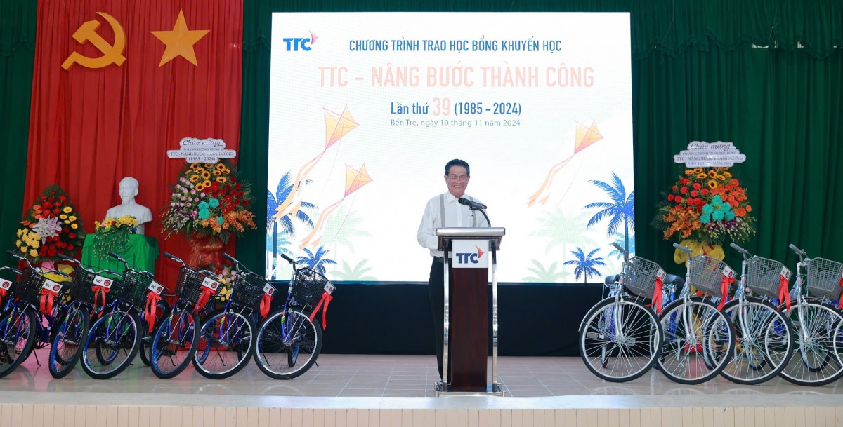 Đại diện huyện Mỏ Cày Nam, ông Nguyễn Việt Thành - Ủy viên Ban thường vụ Huyện ủy - Phó Chủ tịch UBND huyệnchia sẻ: Chương trình “TTC - Nâng bước thành công” trong 39 năm qua không chỉ tạo điều kiện cho các em thành công trong học tập, mà còn để các em biết cách sống nhân ái, biết trân trọng giá trị của sự giúp đỡ và biết tự vượt lên chính mình. Học bổng này không chỉ đơn giản là món quà vật chất mà còn là sự kỳ vọng gửi gắm vào thế hệ trẻ, trong bất cứ hoàn cảnh có khó khăn nào, nếu có niềm tin, sự cố gắng vươn lên thì sẽ thành công trên con đường học vấn của mình”.