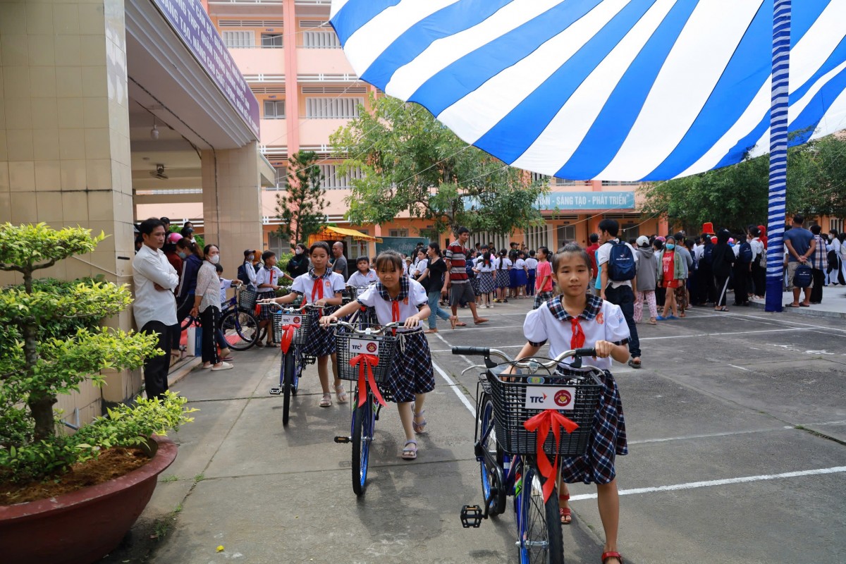 Theo đó, 500 em học sinh mỗi em được nhận học bổng 1.000.000 đồng/1 suất và quà tặng gồm balô, nhu yếu phẩm - hành trang thiết thực để các em yên tâm tiếp bước. Cũng tại buổi lễ này đại diện TTC đã trao cho 68 em học sinh quà tặng là 68 chiếc xe đạp, đối với các em học sinh, việc được đi học là niềm hạnh phúc lớn lao và chiếc xe đạp sẽ giúp con đường đến trường vơi bớt nhọc nhằn.