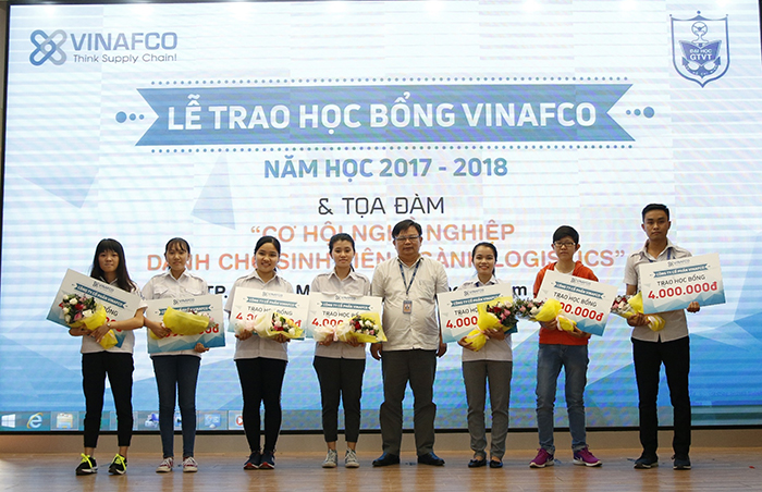 Với mong muốn được góp sức mình đồng hành cùng các em sinh viên, khích lệ các em trên chặng đường trau dồi tri thức, làm chủ tương lai, Ban lãnh đạo Công ty Cổ phần Vinafco đã trao 8 suất học bổng, mỗi suất trị giá 4,000,000 VNĐ cho 8 em sinh viên có thành tích xuất sắc Khoa Kinh tế vận tải – trường ĐH. GTVT TP. Hồ Chí Minh. Đây cũng là một trong những hoạt động của Vinafco hướng tới kỷ niệm 30 năm thành lập công ty (1987-2017).