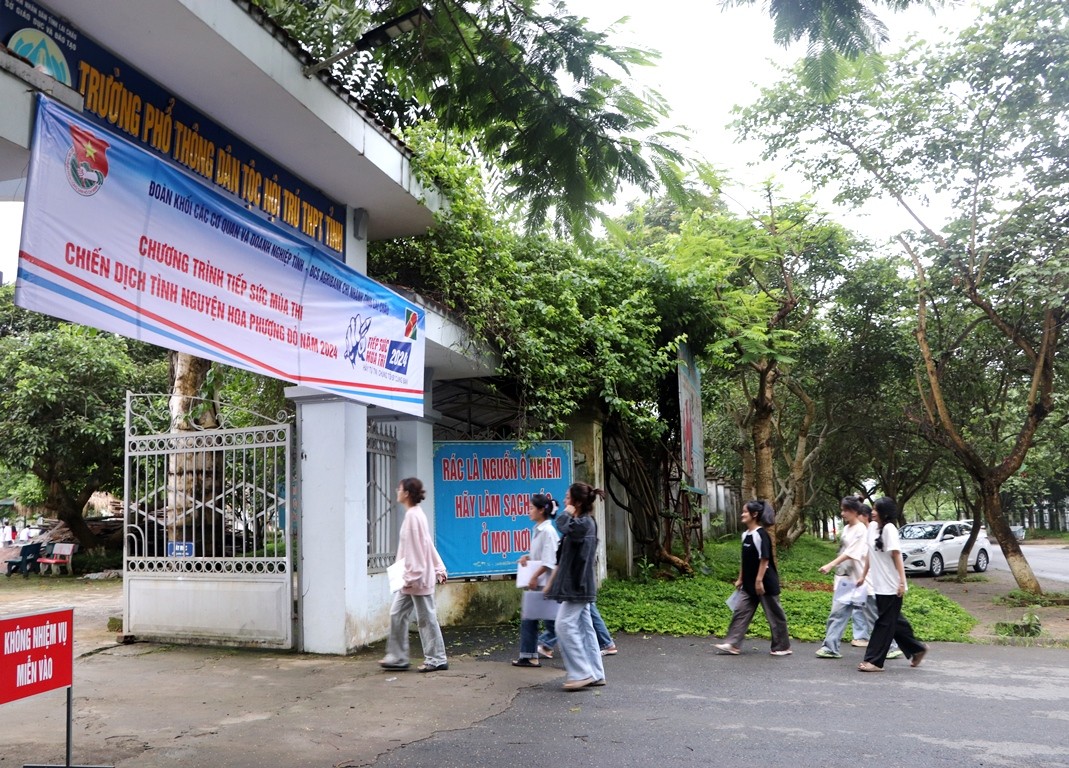 | Tại điểm thi Trường Phổ thông Dân tộc Nội trú tỉnh, các thí sinh có mặt từ rất sớm để tham gia kỳ thi (Ảnh: CTTĐTLC) |