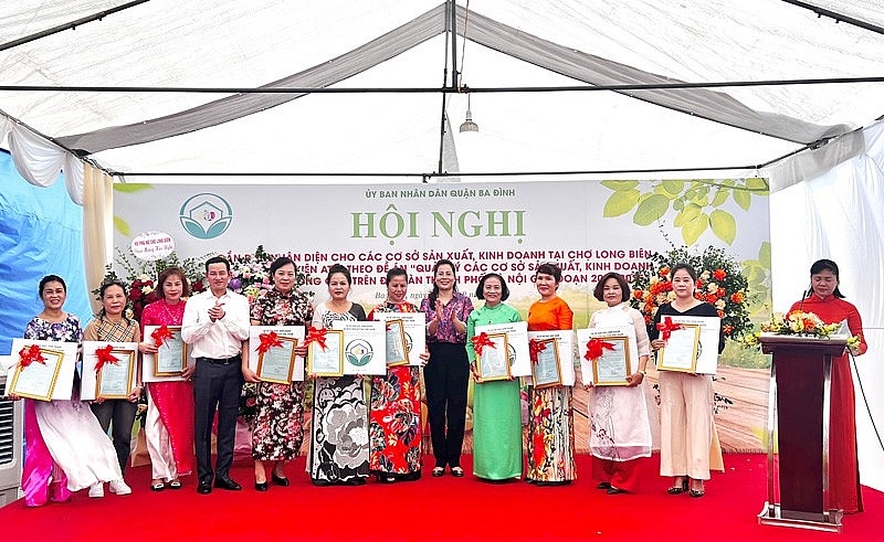 41 cơ sở kinh doanh thực phẩm tại chợ Long Biên được gắn biển nhận diện đợt I