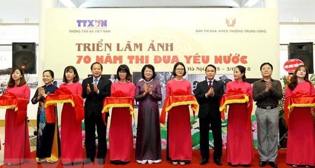 Triển lãm ảnh “70 năm thi đua ái quốc” gồm 100 bức ảnh tư liệu đen trắng và màu, phản ánh chân thực, sinh động hình ảnh Bác Hồ với phong trào thi đua yêu nước; những điển hình trong phong trào thi đua yêu nước suốt 7 thập kỷ qua; từ Đại hội Anh hùng Chiến sĩ thi đua trong những năm kháng chiến đến Đại hội Thi đua yêu nước thời kỳ đổi mới. Bên cạnh đó là các hình ảnh thể hiện những phong trào thi đua thời kỳ kháng chiến như “Hũ gạo kháng chiến”, “ Diệt giặc đói, diệt giặc dốt, diệt giặc ngoại xâm”, thanh niên “Ba sẵn sàng”, phụ nữ “Ba đảm đang”, “Gió Đại Phong”, “Cờ Ba nhất”, “Trống Bắc Lý”… đến các phong trào thi đua thời kỳ đổi mới, đáp ứng yêu cầu đẩy mạnh công nghiệp hóa, hiện đại hóa đất nước như “Cả nước chung tay xây dựng nông thôn mới”, “Đền ơn đáp nghĩa”, “Lao động giỏi, lao động sáng tạo”, “Thi đua dạy tốt, học tốt”…