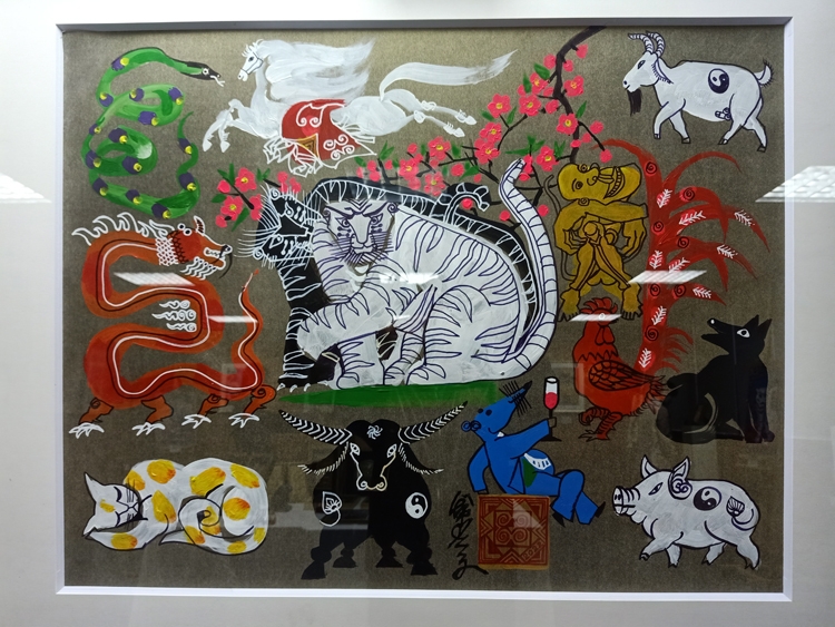| Tranh 12 con giáp với hình tượng hổ ở trung tâm của hoạ sĩ Lê Trí Dũng |
