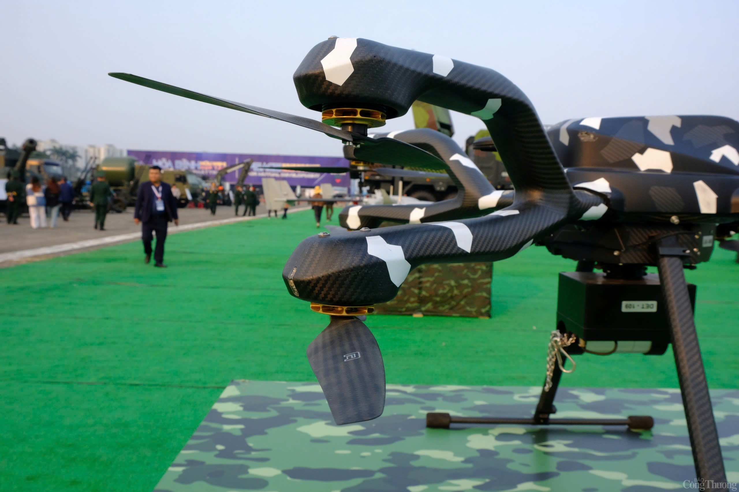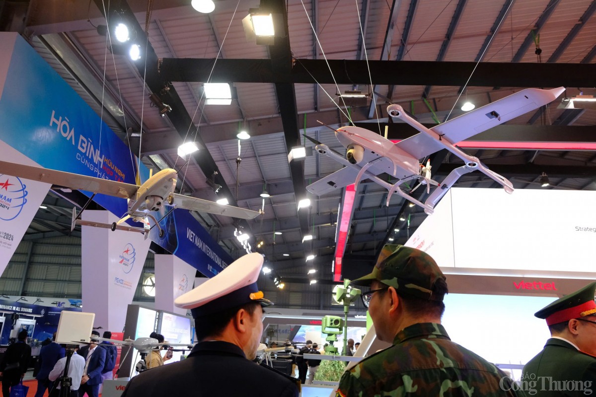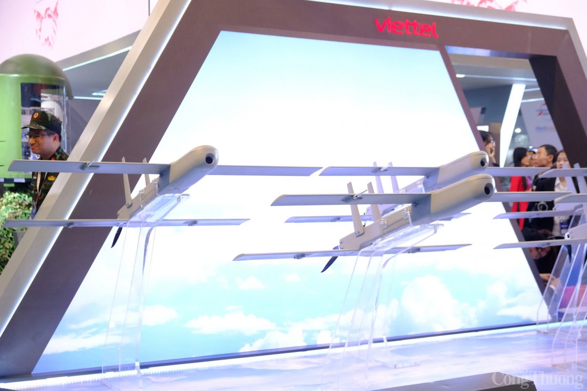 Tại gian trưng bày trong nhà của Viettel nổi bật là dàn UAV trinh sát, UAV cảm tử và UAV đa năng. Tất cả các UAV này Viettel đều làm chủ công nghệ, tự nghiên cứu, phát triển và chế tạo trong nước 100%.