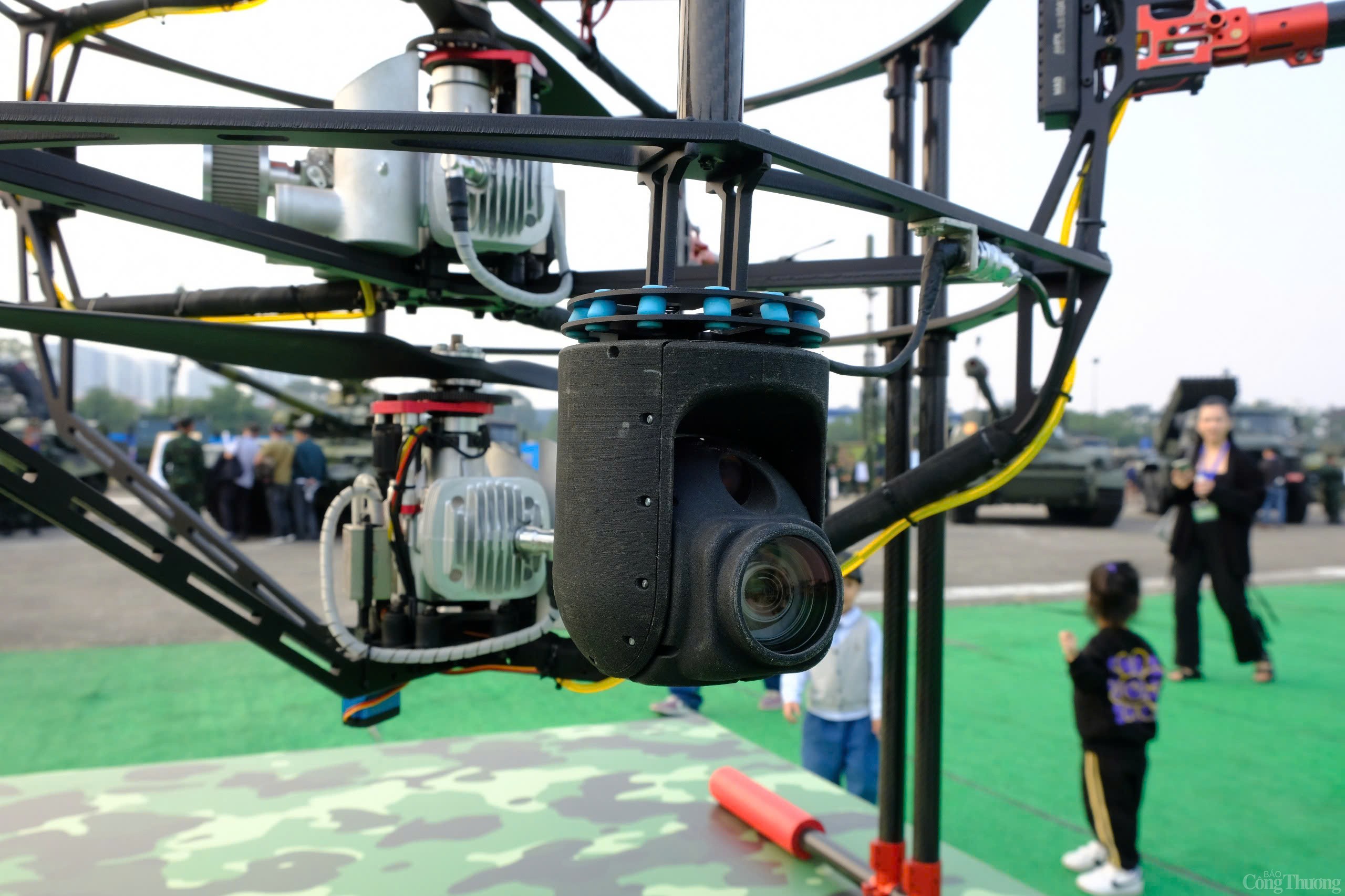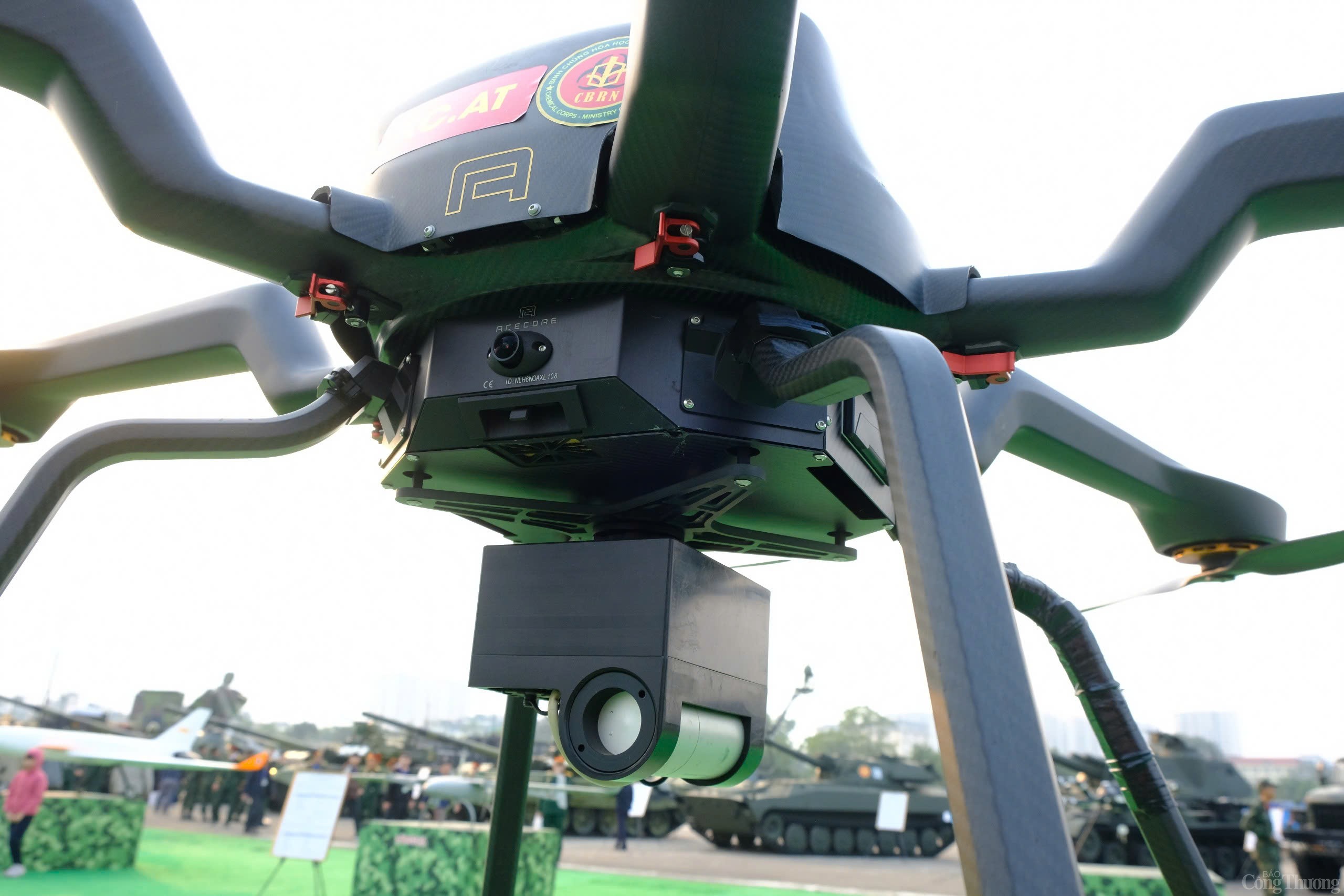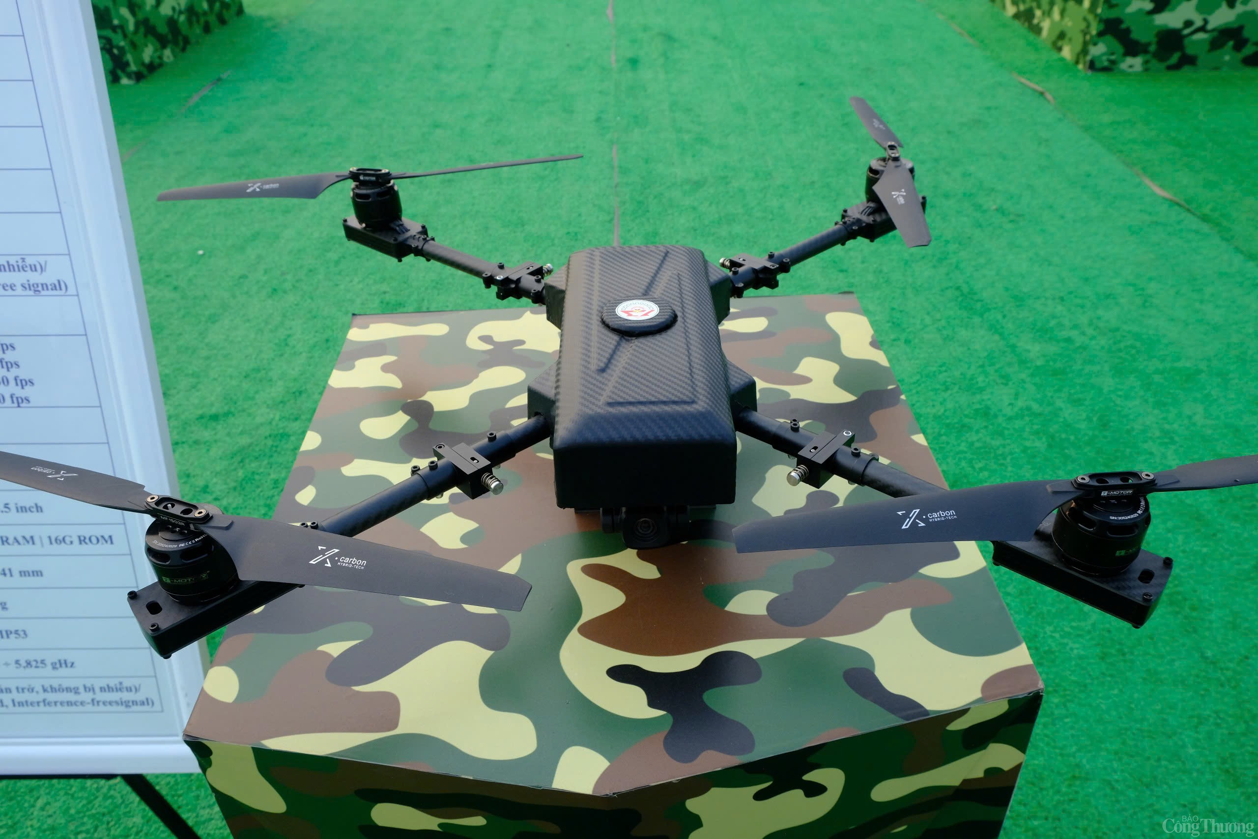 Tại gian trưng bày trong nhà của Viettel nổi bật là dàn UAV trinh sát, UAV cảm tử và UAV đa năng. Tất cả các UAV này Viettel đều làm chủ công nghệ, tự nghiên cứu, phát triển và chế tạo trong nước 100%.