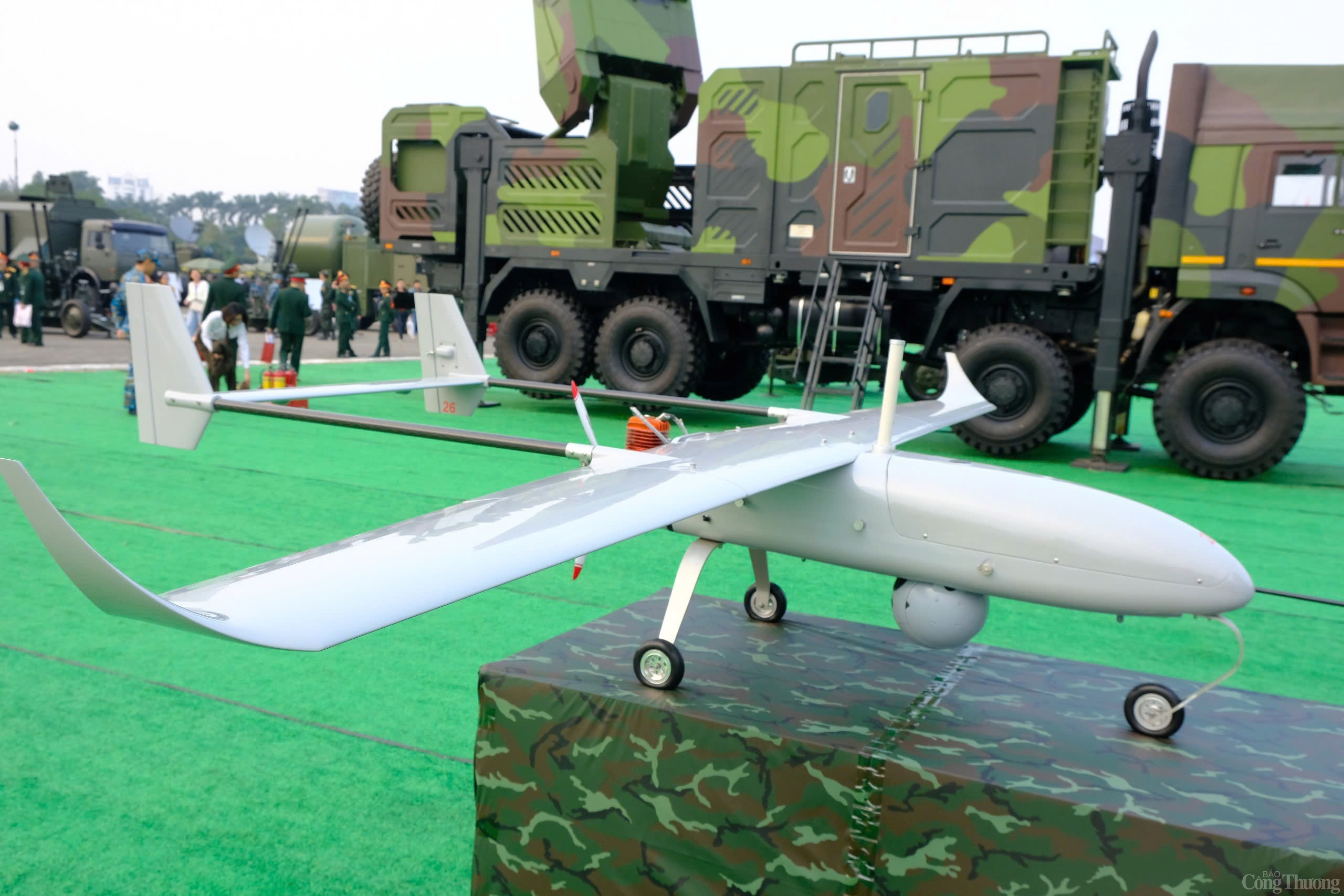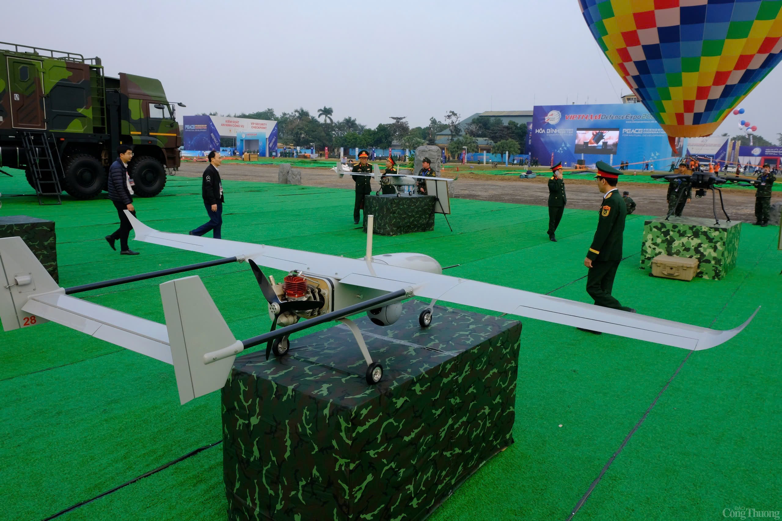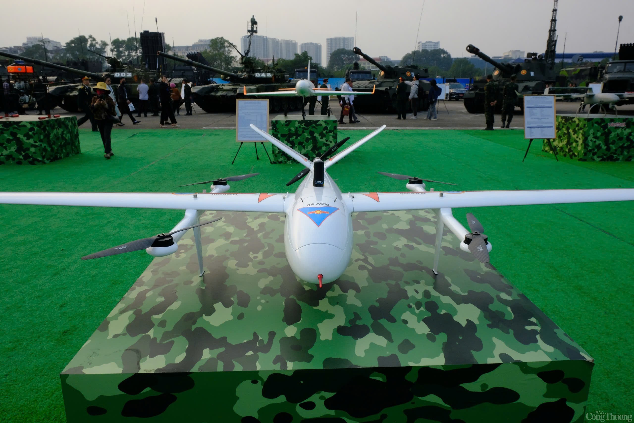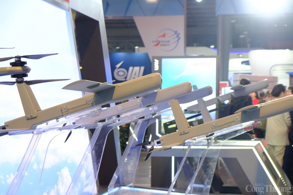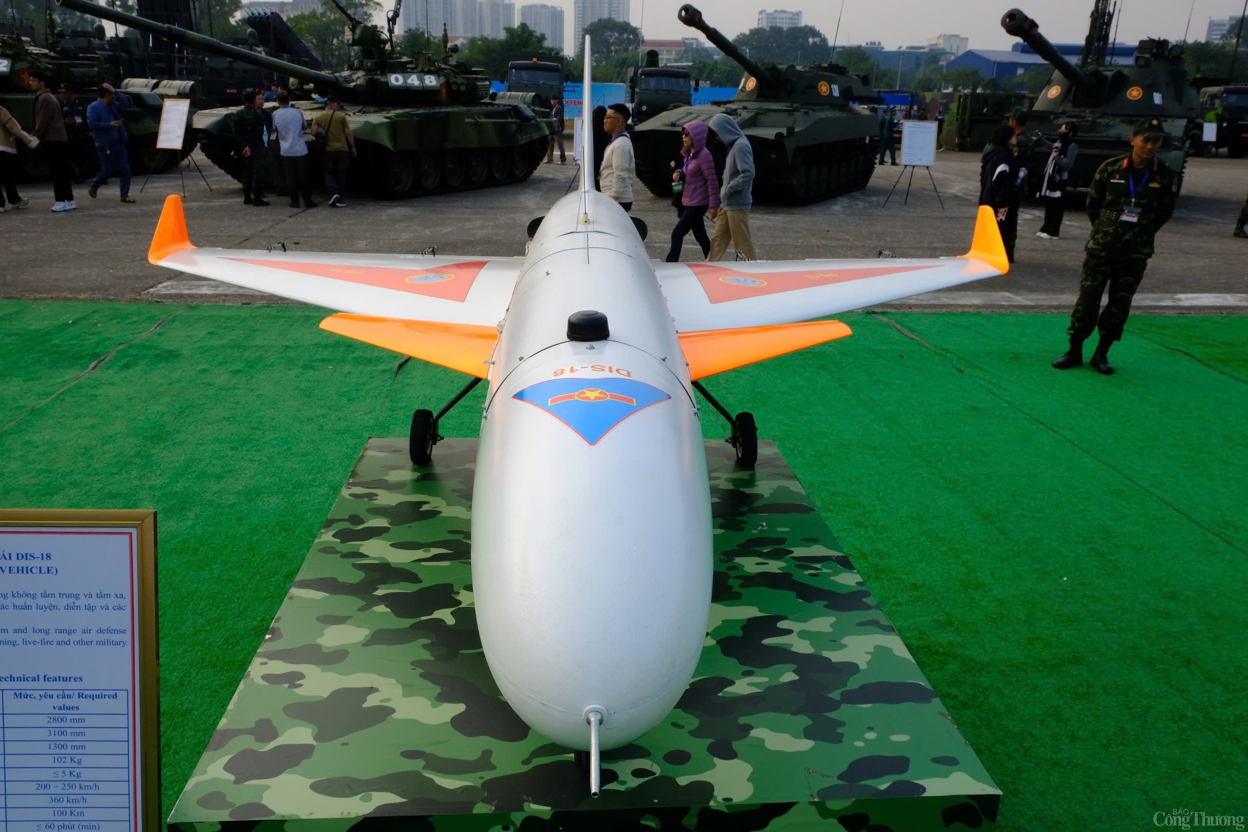 Tại triển lãm, một số loại UAV của Việt Nam đã được trưng bày, điển hình là các mẫu máy bay không người lái M400-CT2, MMD-01, DIS-18, và RAV-80. Các sản phẩm này đều được nghiên cứu và sản xuất trong nước, thể hiện sự tiến bộ trong công nghệ và sản phẩm quân sự Việt Nam. UAV M400-CT2, chẳng hạn, được thiết kế để làm mục tiêu bay cho các khí tài tên lửa phòng không tầm trung và tầm gần, với các tính năng như tốc độ hành trình lên tới 220 km/h và thời gian hoạt động tối đa 120 phút. Đặc biệt, UAV này có thể mang theo nhiều loại tải khác nhau như hệ thống quang, ảnh nhiệt và khói, phục vụ cho huấn luyện và các hoạt động quân sự khác.
