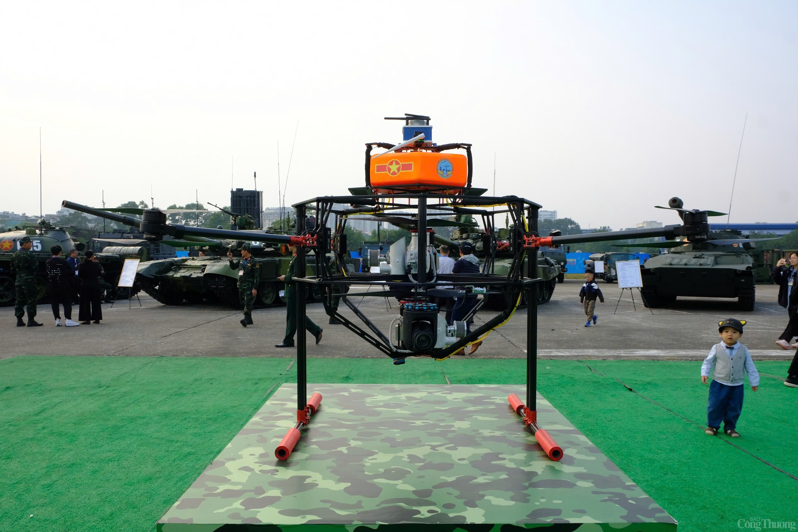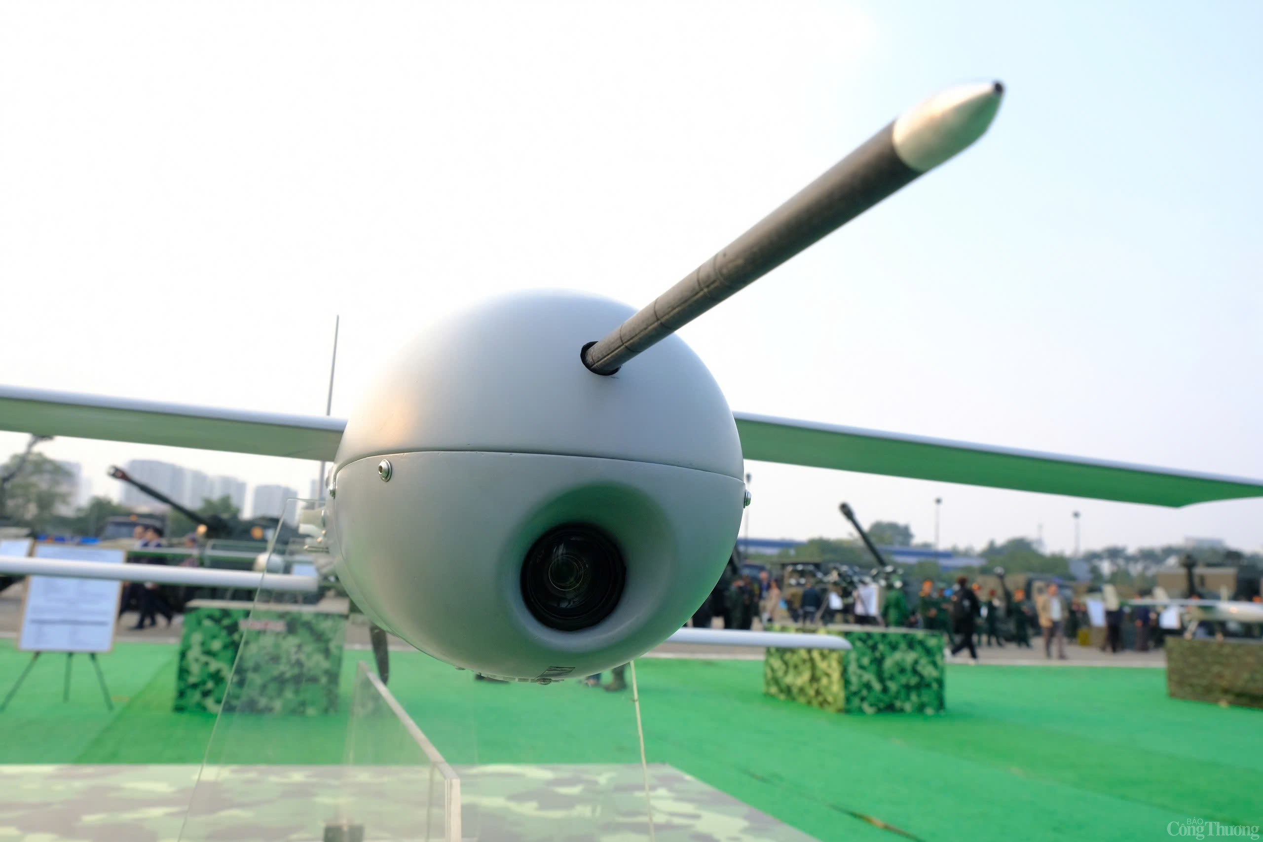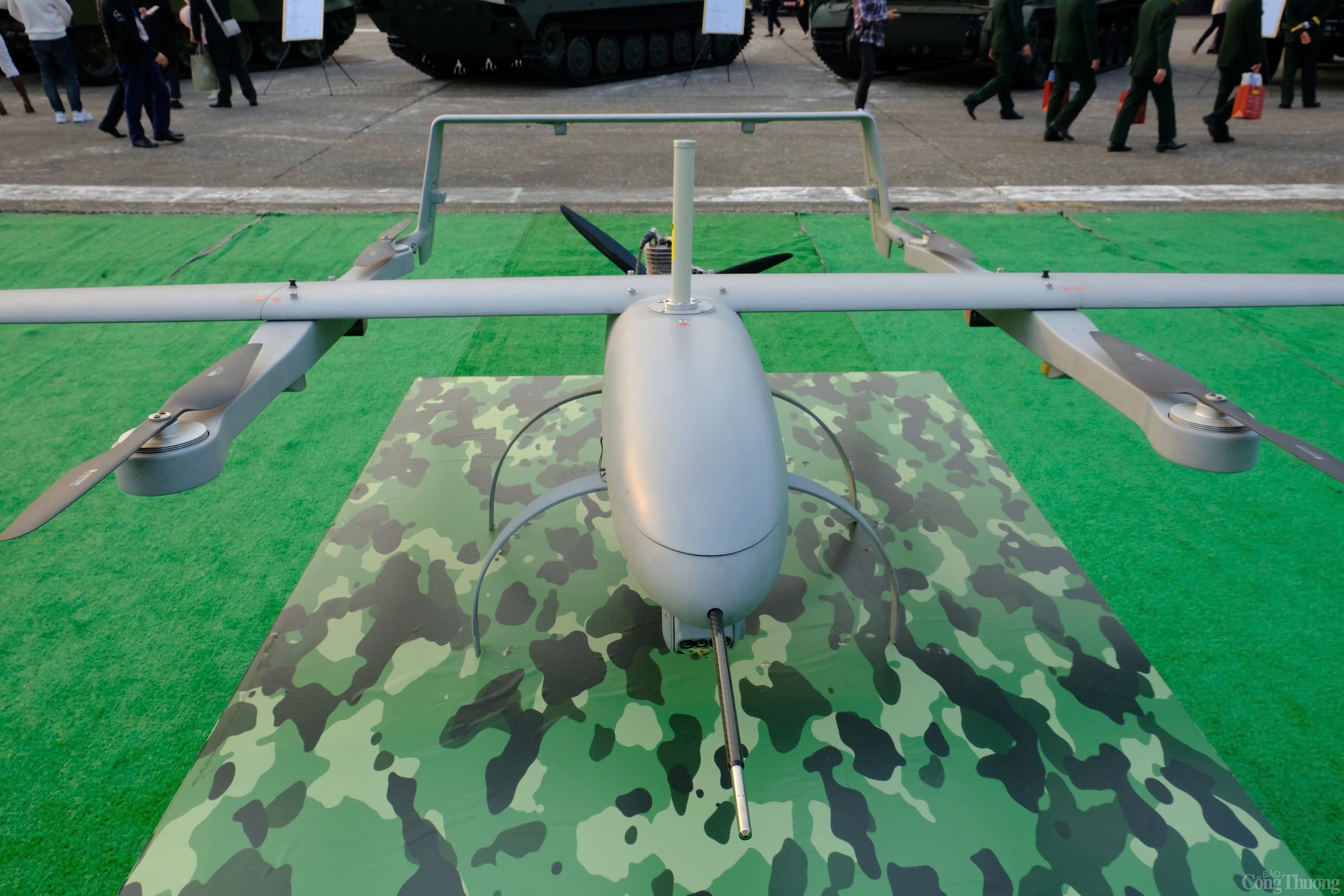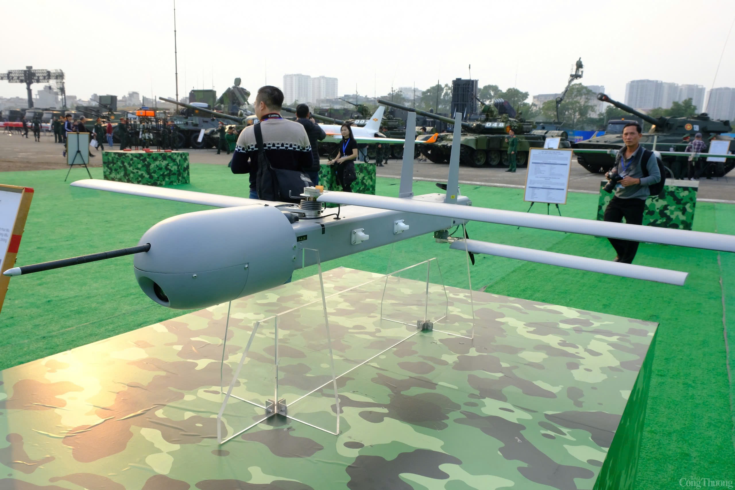 Tại triển lãm, một số loại UAV của Việt Nam đã được trưng bày, điển hình là các mẫu máy bay không người lái M400-CT2, MMD-01, DIS-18, và RAV-80. Các sản phẩm này đều được nghiên cứu và sản xuất trong nước, thể hiện sự tiến bộ trong công nghệ và sản phẩm quân sự Việt Nam. UAV M400-CT2, chẳng hạn, được thiết kế để làm mục tiêu bay cho các khí tài tên lửa phòng không tầm trung và tầm gần, với các tính năng như tốc độ hành trình lên tới 220 km/h và thời gian hoạt động tối đa 120 phút. Đặc biệt, UAV này có thể mang theo nhiều loại tải khác nhau như hệ thống quang, ảnh nhiệt và khói, phục vụ cho huấn luyện và các hoạt động quân sự khác.