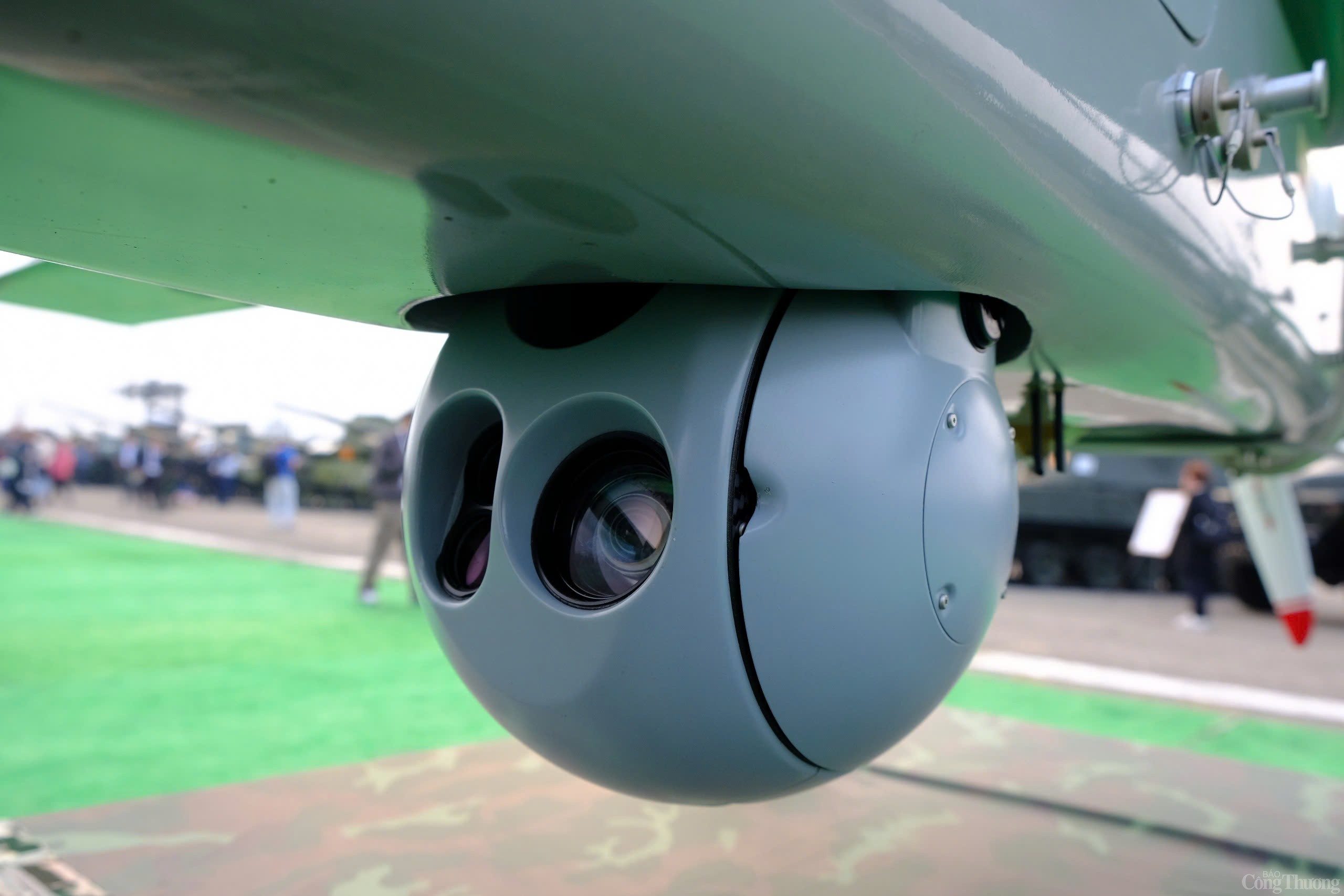 UAV trinh sát hạng nhẹ tầm trung VU-R70. Với sải cánh 3,1m, chiều dài 1,7m và trọng lượng cất cánh tối đa 26kg, VU-R70 có thể hoạt động liên tục trong 4,5 giờ và đạt tốc độ tối đa 120km/h. Công nghệ AI tích hợp trên hệ thống camera cũng cho phép VU-R70 tìm kiếm, phát hiện, nhận dạng mục tiêu tự động hoàn toàn, sau đó chỉ thị mục tiêu cho lực lượng hỏa lực.