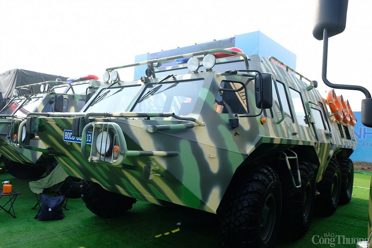 | Với khả năng vượt chướng ngại vật, leo dốc và di chuyển qua vùng ngập nước, xe có thân và kính chống đạn, giá lắp súng trên nóc, lốp xe bền bỉ cùng động cơ mạnh mẽ, đảm bảo tính cơ động cao trong các tình huống khẩn cấp. - Ảnh: Thế Duy |