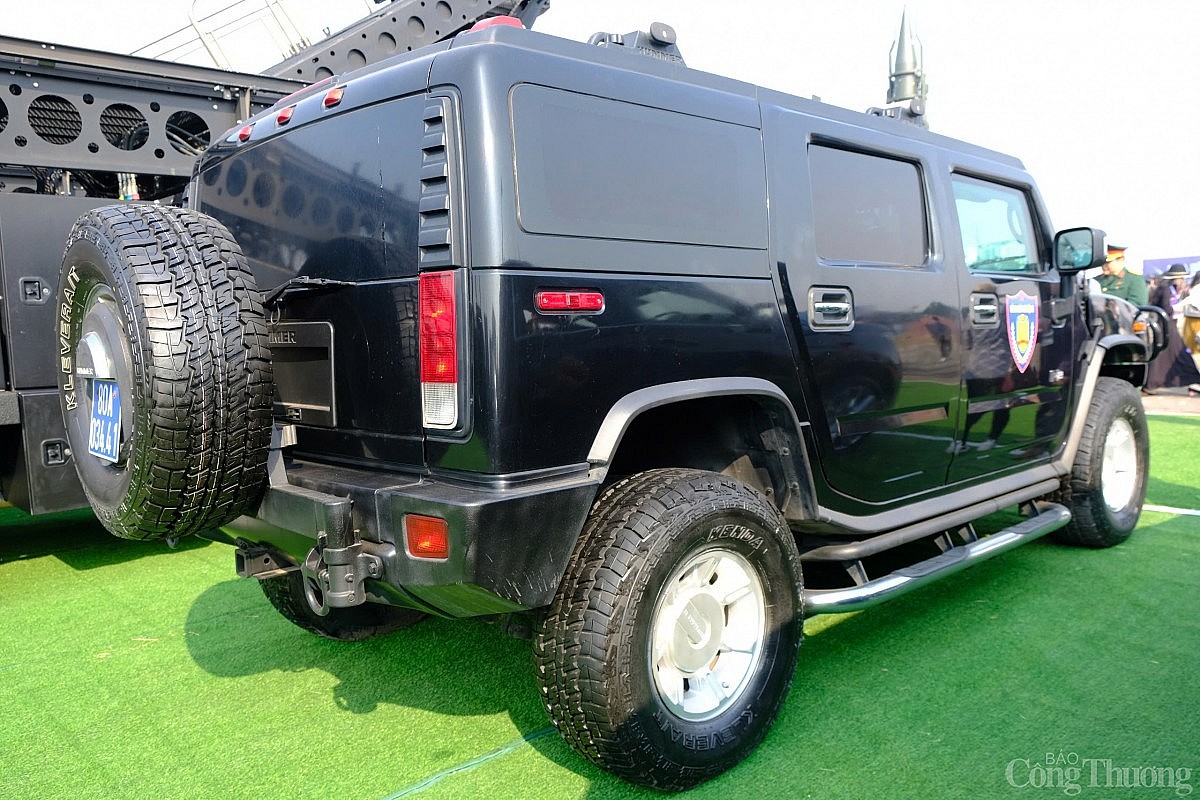 | Xe chỉ huy Hummer H2 chống đạn, sản phẩm của GM (Mỹ), được thiết kế chuyên biệt để phục vụ công tác chỉ huy tại các khu vực an ninh phức tạp. - Ảnh: Thế Duy |