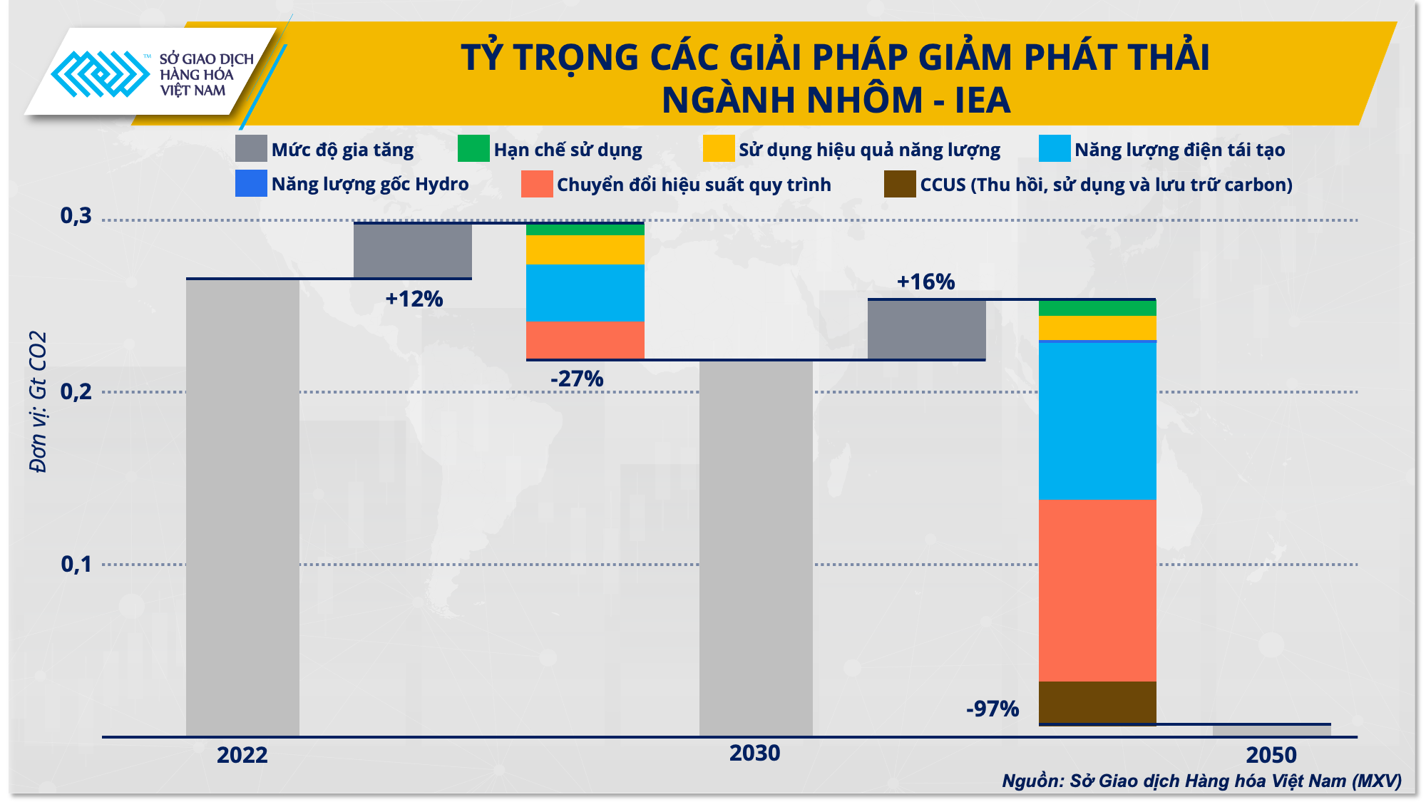 | Tỷ trọng các giải pháp giảm phát thải ngành nhôm - IEA |