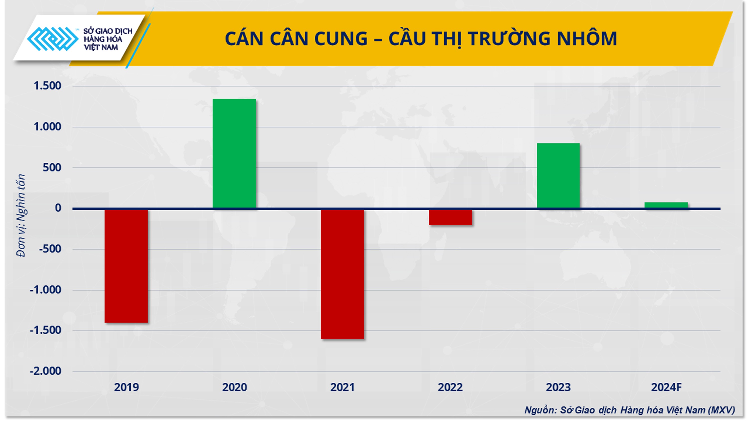 Đánh giá về tình hình cung cầu, Tập đoàn tài chính ING cho biết thị trường nhôm thặng dư tới khoảng 800.000 tấn trong năm ngoái. Còn trong năm 2024, cán cân được dự báo sẽ cân bằng hơn, nhưng vẫn sẽ có khoảng 80.000 tấn nhôm dư thừa khi năng lực tiêu thụ còn yếu, cho thấy ngành nhôm còn tiềm ẩn khá nhiều thách thức.