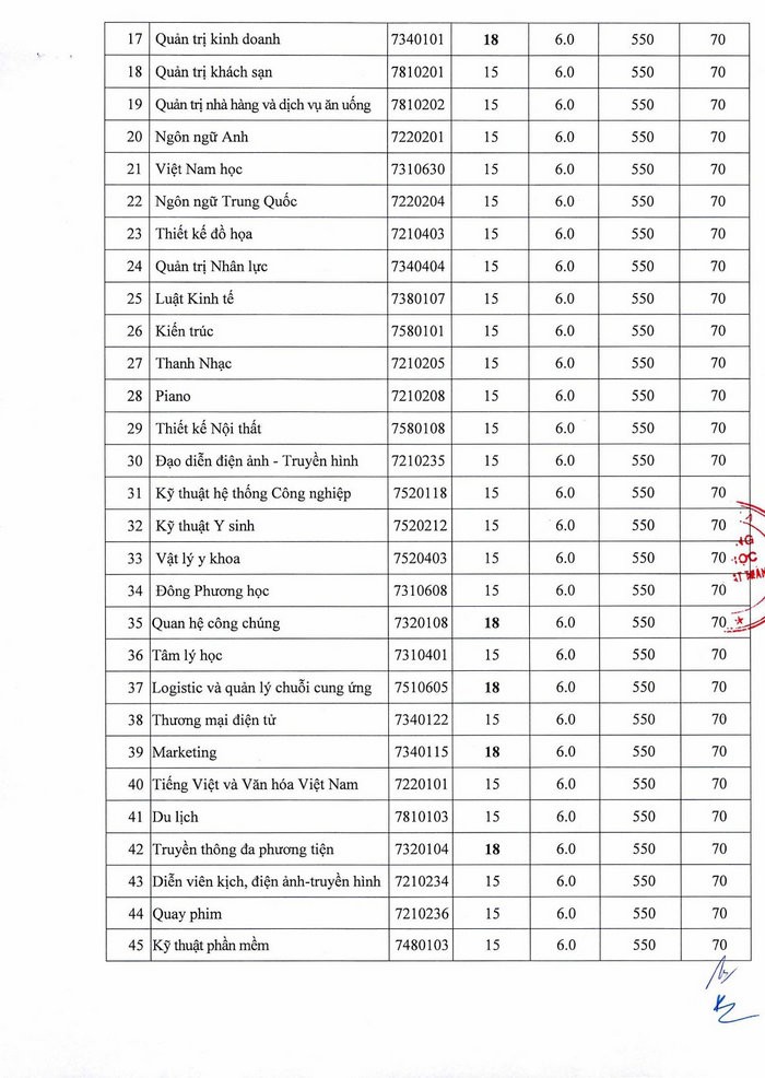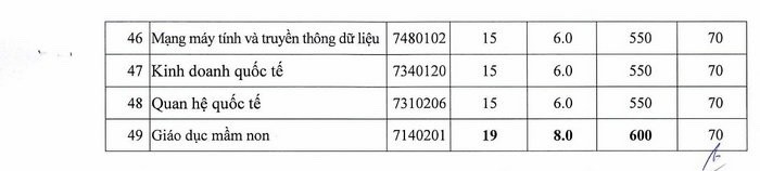 Cùng phương thức này, chương trình chuẩn/đại trà của trường có điểm chuẩn cao nhất là 21 điểm (ngành Ngôn ngữ Anh).