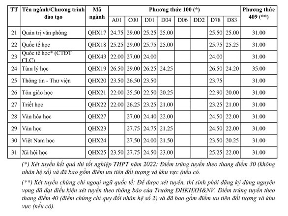 Một số ngành của trường Đại học Khoa học Xã hội và Nhân văn với tuyển tổ hợp khối A có mức điểm chuẩn dao động trên dưới 23 điểm.