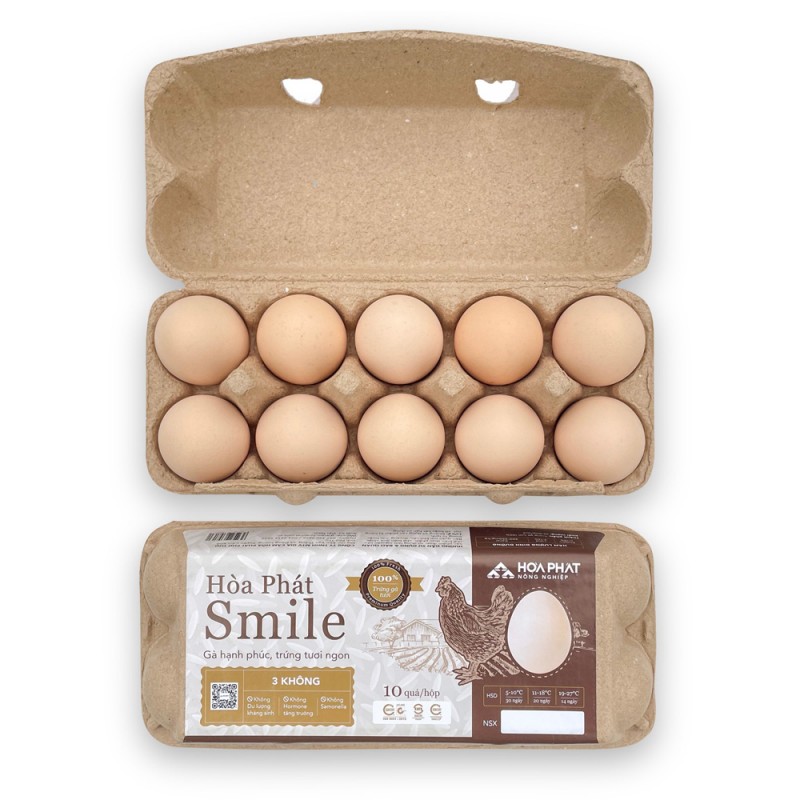 Với phương châm “Gà hạnh phúc, trứng tươi ngon”, trứng gà Hoà Phát Smile đáp ứng đủ tiêu chí 3 không: Không dư lượng kháng sinh, không hormone tăng trưởng, không samonella. Trứng có hàm lượng dinh dưỡng cao, chứa 11-15% protein, 7-14% lipit, 300-550mg/kg lượng canxi, đạt 40-60g khối lượng mỗi quả.