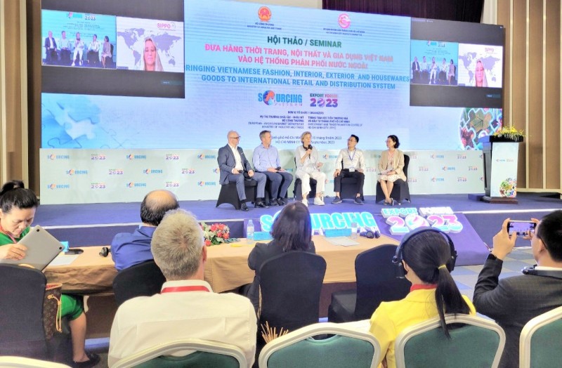 | Các diễn giả chia sẻ kinh nghiệm, giải pháp đưa hàng thời trang, gia dụng Việt Nam vào hệ thống phân phối quốc tế |