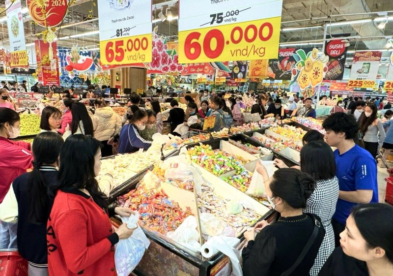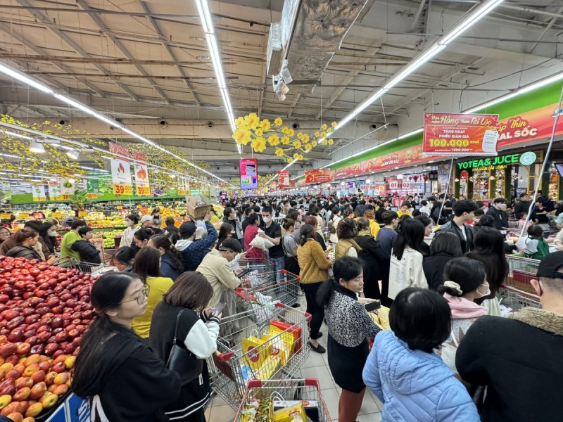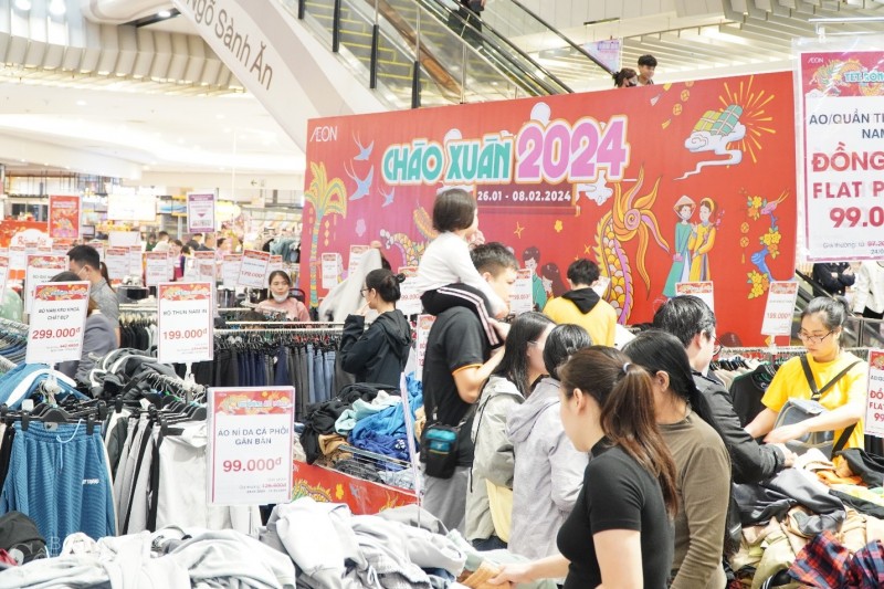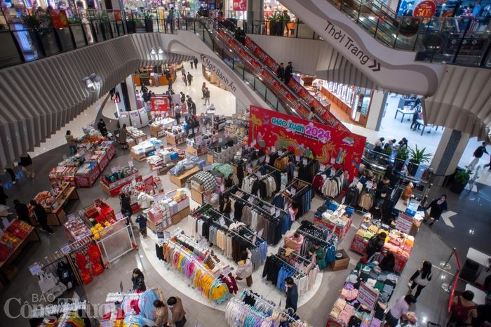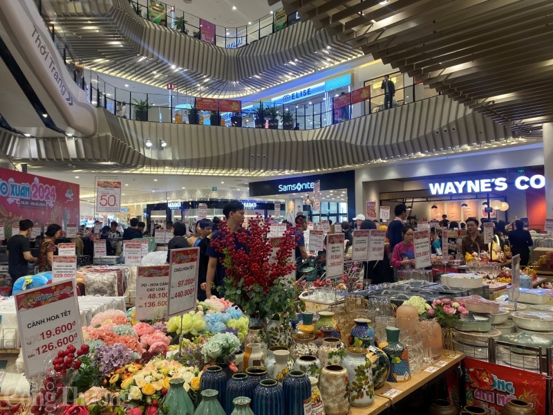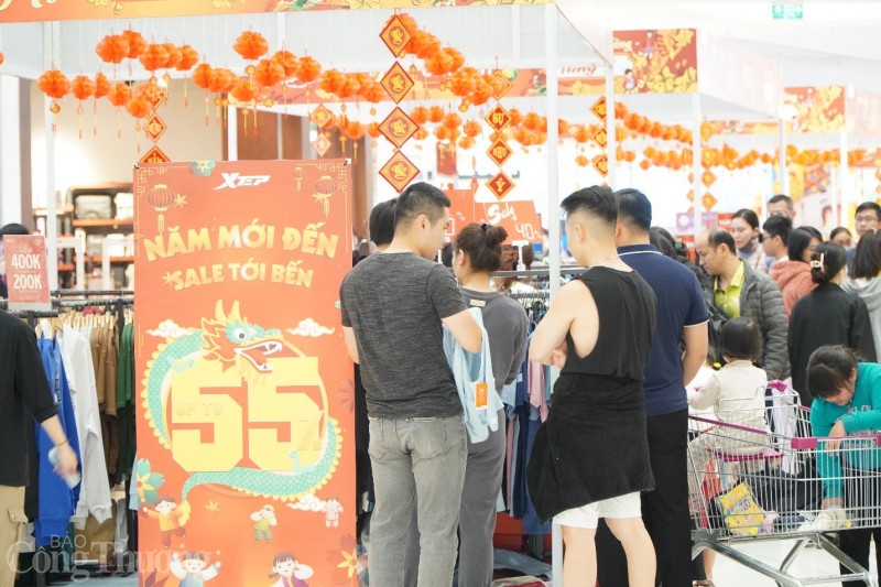 Một số trung tâm thương mại lớn chật kín khách đến mua sắm chuẩn bị cho Tết Nguyên đán. Nhiều nhãn hàng liên tục tung khuyến mãi kích cầu người dân.