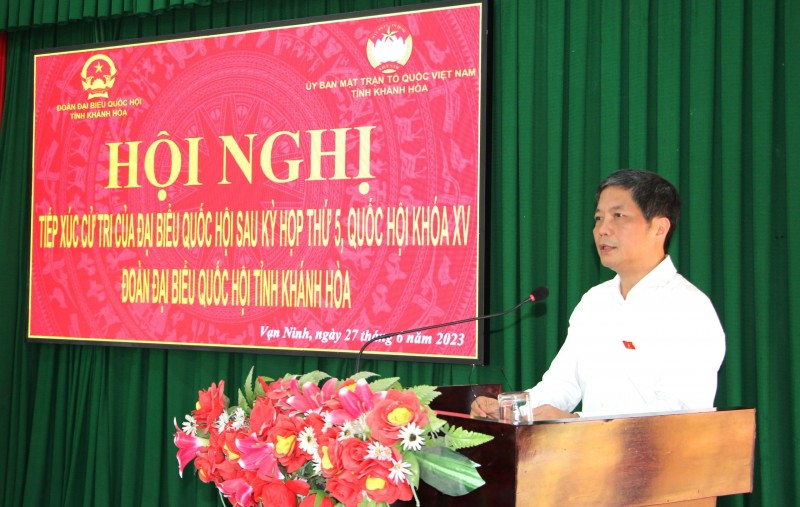 Tại buổi tiếp xúc, cử tri huyện Vạn Ninh kiến nghị một số nội dung như: Cần sớm giải quyết triệt để những đơn thư, kiến nghị của nhân dân liên quan đến đất đai nhằm đảm bảo quyền lợi cho người dân thôn Đầm Môn (xã Vạn Thạnh); Cần sửa chữa, nâng cấp tạo mỹ quan khu vực Đài tưởng niệm liệt sĩ của xã Đại Lãnh đảm bảo sự tôn nghiêm, trang trọng; Cần giải quyết nhanh các thủ tục chuyển tuyến để người dân được khám, điều trị bệnh bằng bảo hiểm y tế ở tuyến trên; Cần có chính sách hạ lãi suất ngân hàng để người dân bớt gánh nặng lãi vay, đầu tư phát triển kinh tế gia đình.