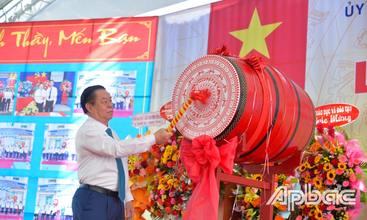 Cùng đoàn công tác còn có Thứ trưởng Bộ Giáo dục và Đào tạo Nguyễn Văn Phúc; đồng chí Nguyễn Văn Vĩnh, Phó Bí thư Tỉnh ủy, Chủ tịch UBND tỉnh Tiền Giang; đồng chí Châu Thị Mỹ Phương, Ủy viên Ban Thường vụ, Trưởng Ban Tuyên giáo Tỉnh ủy Tiền Giang.