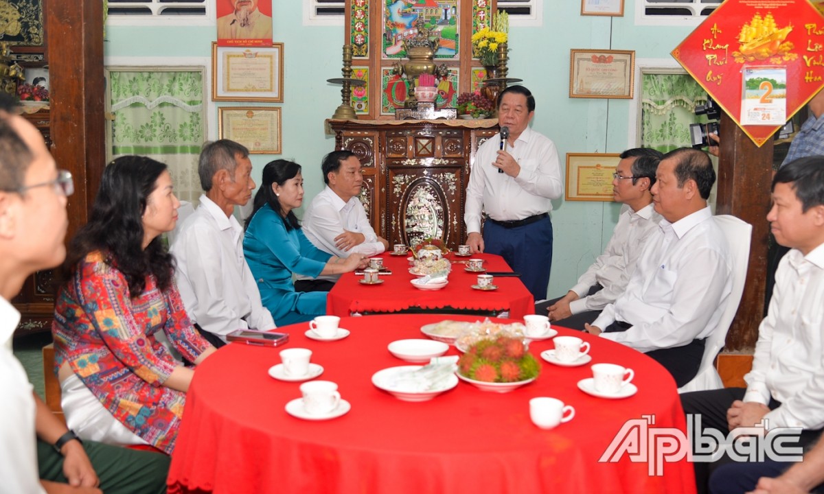 | Đồng chí Nguyễn Trọng Nghĩa phát biểu tại chuyến thăm gia đình liệt sĩ Trừ Văn Thố. - Ảnh: Báo Ấp Bắc |