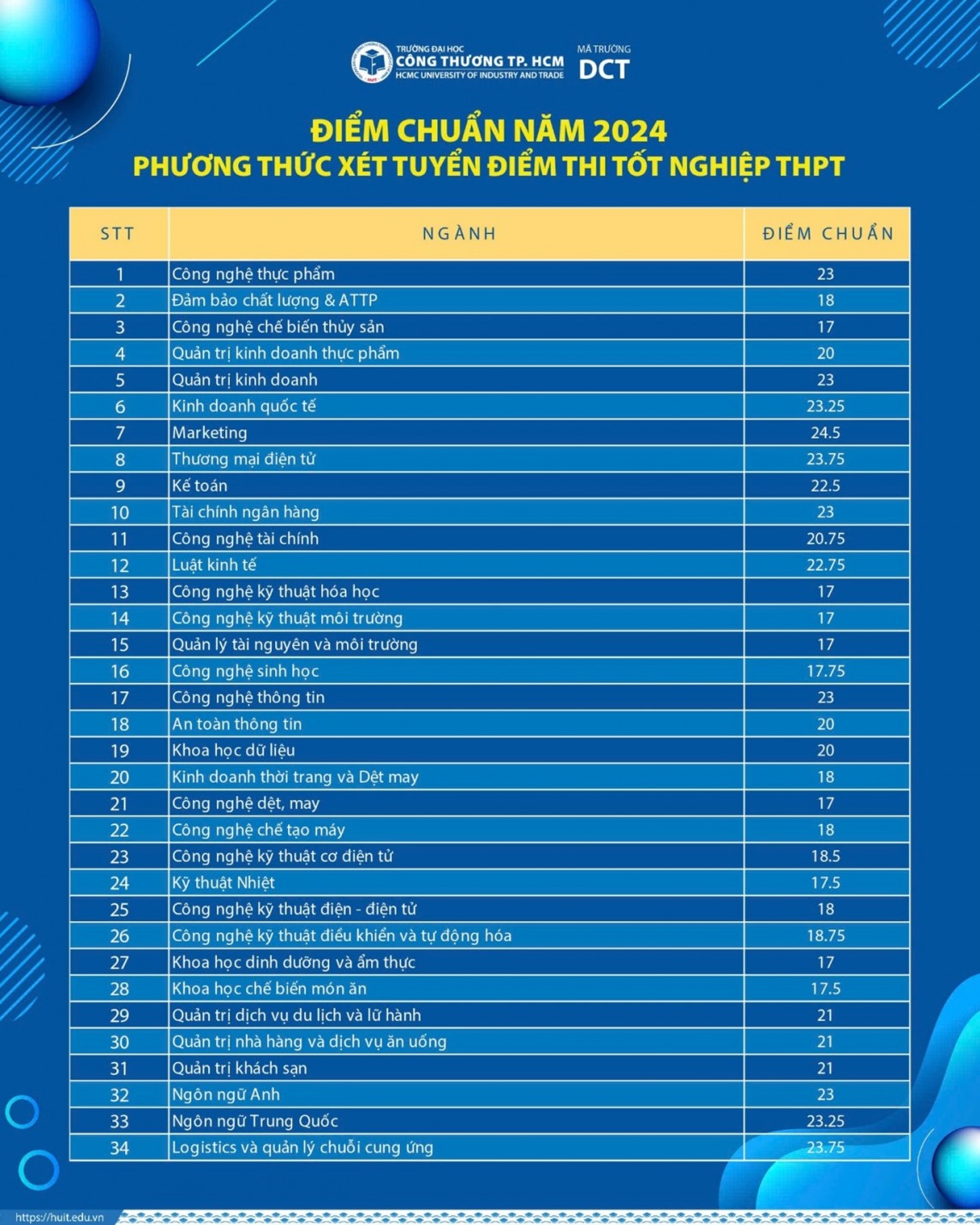 | Điểm chuẩn cao nhất của Trường Đại học Công Thương TP.HCM là 24,5 điểm |