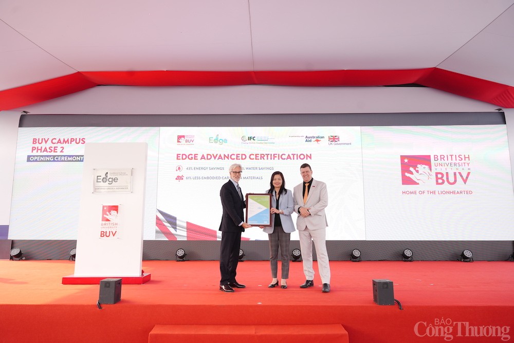 Tại buổi lễ, BUV đã nhận được Chứng nhận EDGE Advanced. EDGE là chứng nhận xây dựng xanh quốc tế do IFC (một thành viên của Nhóm Ngân hàng Thế giới) phát triển. BUV tiếp tục khẳng định cam kết về phát triển bền vững, là trường đại học đầu tiên tại Việt Nam nhận được chứng chỉ này, hướng tới trở thành trường đại học tiên phong giảm phát thải carbon bằng 0 cho giai đoạn vận hành.