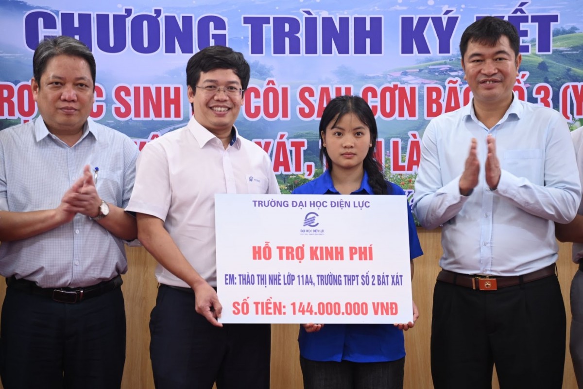 Trước đó, PGS.TS. Đinh Văn Châu - Hiệu trưởng Trường Đại học Điện lực cho biết, sau khi trao đổi, Đảng ủy, Hội đồng Trường, Ban Giám hiệu Trường Đại học Điện lực đã thống nhất trích quỹ phúc lợi của Nhà trường nhận nuôi em Thào Thị Nhè, học sinh lớp 11A4 Trường THPT số 2 Bát Xát, huyện Bát Xát, Lào Cai đến hết cấp 3. Sau khi tốt nghiệp PTTH, Trường tạo điều kiện xét tuyển và có chính sách phù hợp để em tiếp tục được học Đại học. Việc làm này nhằm bù đắp những mất mát cho em để đứng lên sau thảm họa lũ quét.