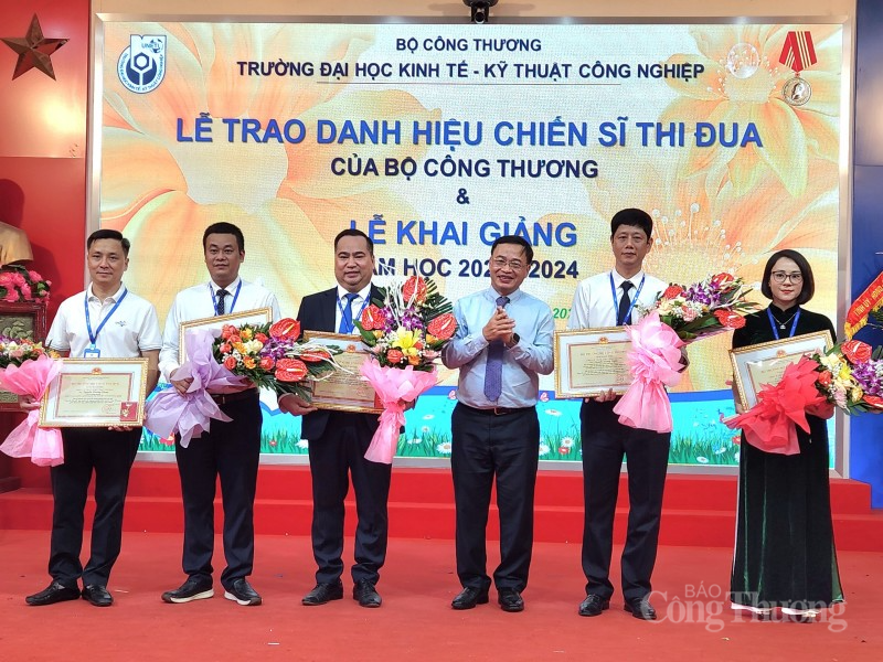 | Ông Nguyễn Anh Tuấn - Ủy viên Ban cán sự Đảng - Vụ trưởng Vụ tổ chức cán bộ - Bộ Công Thương thừa ủy quyền của Bộ trưởng Nguyễn Hồng Diên trao danh hiệu Chiến sĩ thi đua Bộ Công Thương cho các cá nhân đạt thành tích xuất sắc trong phong trào thi đua "Dạy tốt - học tốt" |