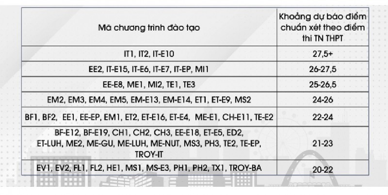| Đại học Bách khoa Hà Nội đã đưa ra bảng dự báo điểm chuẩn theo điểm thi tốt nghiệp THPT 2023 |