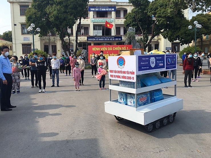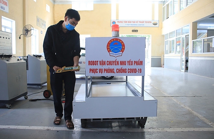 Trước đó, trong bối cảnh dịch bệnh Covid-19 đang diễn biến phức tạp tại TP. Chí Linh, tỉnh Hải Dương, để hạn chế sự tiếp xúc trực tiếp và giảm thiểu nguy cơ lây nhiễm giữa những bệnh nhân, người cách ly tập trung với nhân viên y tế và người phục vụ trong bệnh viện dã chiến và khu cách ly, nhóm giảng viên Trường Đại học Sao Đỏ đã đề xuất ý tưởng và bắt tay vào chế tạo robot vận chuyển nhu yếu phẩm phục vụ phòng, chống Covid-19.