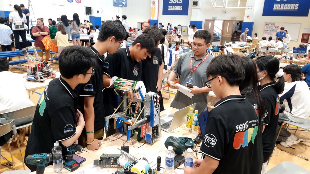 | Đội 36070J - LSTS FATE tham dự Giải Vô địch Quốc gia VEX Robotics 2024, thầy Huỳnh Bảo Thiên (ngoài cùng bên phải). |