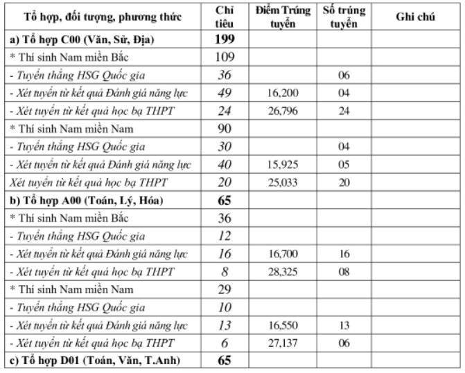 - Xét điểm thi đánh giá năng lực do Đại học Quốc gia Hà Nội và Đại học Quốc gia TP. Hồ Chí Minh tổ chức;