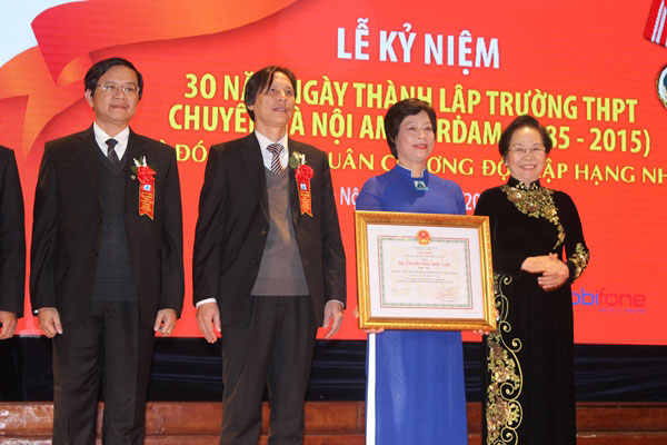 | Phó Chủ tịch nước Nguyễn Thị Doan trao Huân chương Độc lập hạng Nhì cho Trường THPT chuyên Hà Nội - Amsterdam |