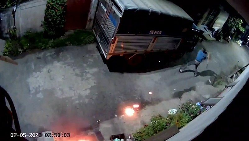 Khi cả 4 đối tượng đến khu dân cư gần nhà anh Trần Khánh, ngụ xã Bắc Sơn thì châm lửa vào các bom xăng và ném về phía chiếc xe tải của anh Khánh đang đậu ven đường.