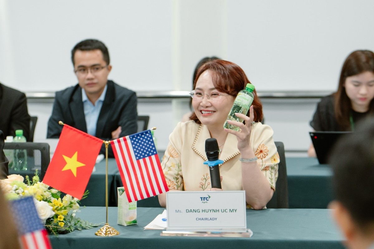 | Chủ tịch HĐQT TTC AgriS, Bà Đặng Huỳnh Ức My trong buổi làm việc với đoàn Chính phủ Hoa Kỳ trong tháng 2/2025 - Khẳng định mở rộng hợp tác quốc tếvềnông nghiệp bền vững và sản phẩm tự nhiên, nhằm nâng tầm thương hiệu Việt trên thị trường toàn cầu. |