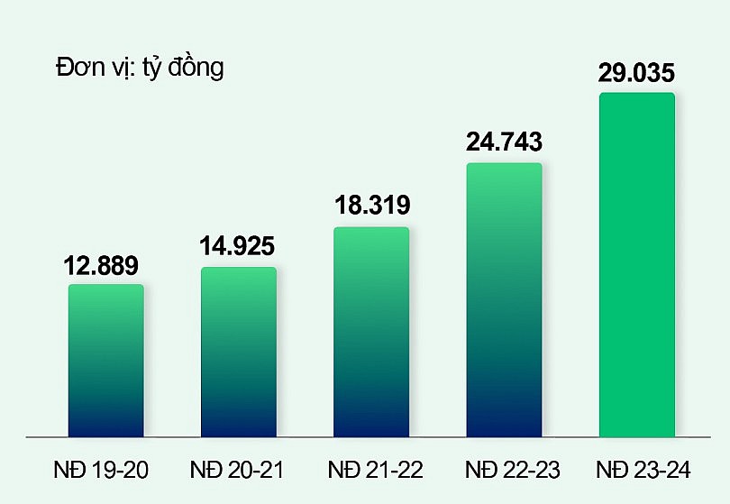 | Doanh thu TTC AgriS liên tục ghi nhận tăng trưởng qua các niên độ, NĐ 23-24 đạt mức cao nhất lịch sử hoạt động, hướng tới mục tiêu Doanh thu 60 nghìn tỷ vào năm 2030 |