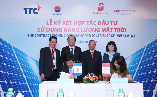Cùng ngày, bên lề Hội nghị Xúc tiến đầu tư tỉnh Bến Tre, Công ty CP Năng lượng TTC (TTC Energy) - thành viên mới của Tập đoàn TTC và Công ty CP Đầu tư Phát triển Saigon Co.op đã cùng nhau ký kết hợp tác đầu tư sử dụng năng lượng mặt trời.