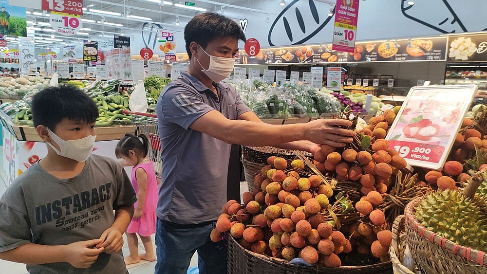 | Vải thiều được bán ở chuỗi siêu thị GO Bắc Giang (Ảnh: Sỹ Quyết) |