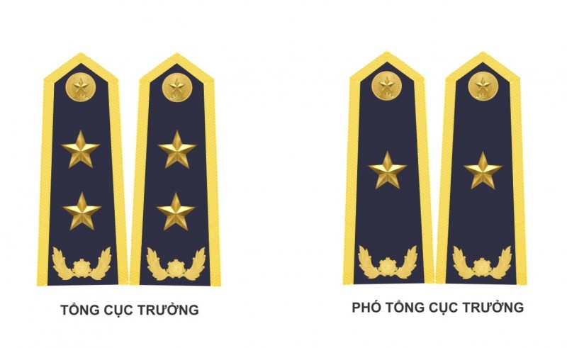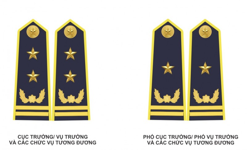 Cấp hiệu của lãnh đạo cấp Cục, Vụ và các chức vụ tương đương gắn 02 vạch ngang màu vàng.