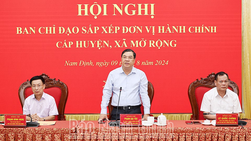 Trước đó, chiều 9/8, Ban Chỉ đạo sắp xếp đơn vị hành chính cấp huyện, cấp xã giai đoạn 2023-2025 tỉnh Nam Định đã tổ chức hội nghị nghe báo cáo kế hoạch thực hiện sắp xếp đơn vị hành chính theo Nghị quyết số 1104/NQ-UBTVQH15, ngày 23/7/2024 của Ủy ban Thường vụ Quốc hội.