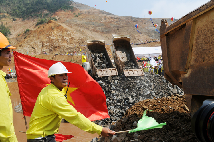 Ngăn dòng xây dựng thủy điện Lai Châu tháng 4/2012