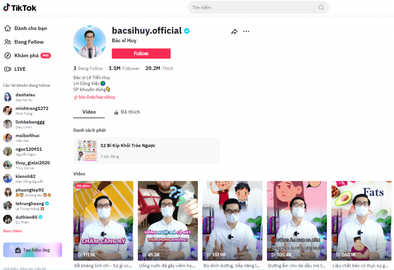 | Kênh TikTok "Bác sĩ Huy" đã xoá video chê sữa trái cây, khen cô gái Hà Lan |