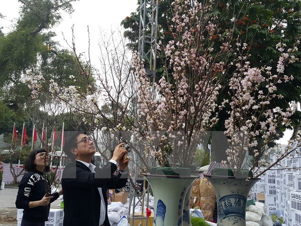 Tưng bừng khai mạc triển lãm hoa anh đào tại Hà Nội