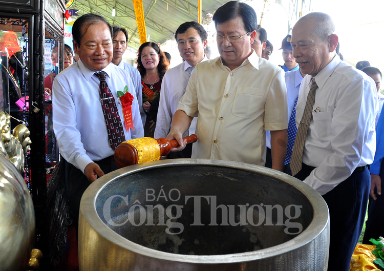 | Phó Thủ tướng Trịnh Đình Dũng thử chuông của làng nghề đúc đồng |