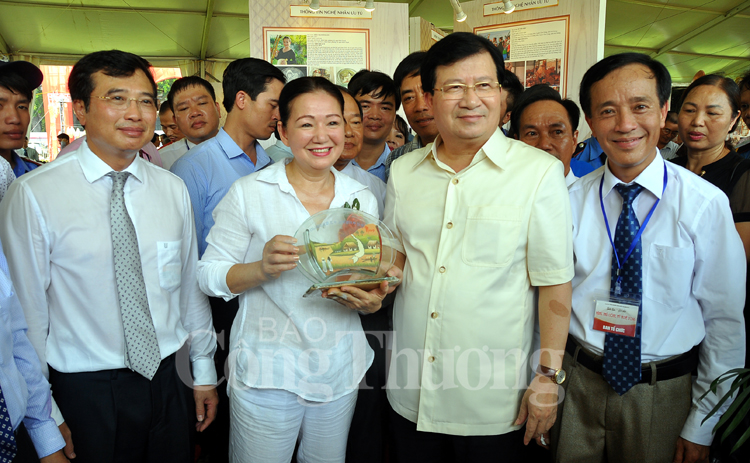 Dưới đây là một số hình ảnh Phó Thủ tướng Trịnh Đình Dũng và đại biểu thăm quan gian hàng của các nghệ nhân: