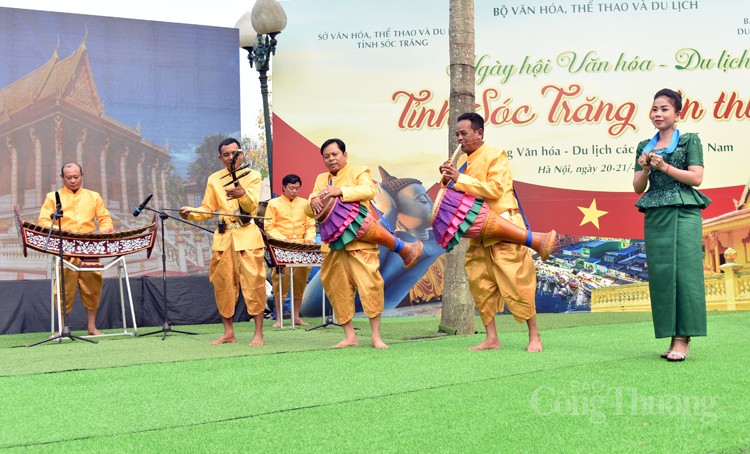 Đồng bào, công chúng thủ đô Hà Nội được hòa mình vào không gian Ngày Văn hóa Sóc Trăng để thưởng thức nhạc Ngũ âm, trống Schay Dăm, đàn ca tài tử, múa Rom vong