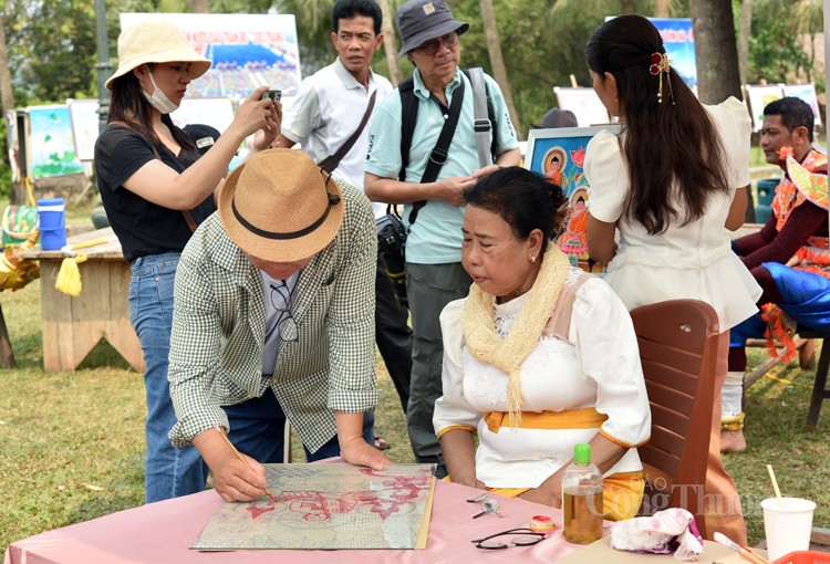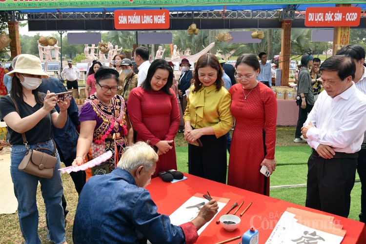 Các đại biểu cùng các du khách hào hứng xin chữ từ thầy đồ