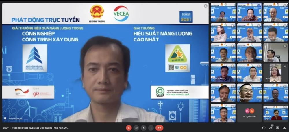 Sáng 23/8, Văn phòng Ban chỉ đạo Tiết kiệm năng lượng - Bộ Công Thương đã phối hợp với Hội Khoa học và công nghệ sử dụng năng lượng tiết kiệm và hiệu quả Việt Nam (VECEA) tổ chức phát động 3 giải thưởng về năng lượng gồm: Giải thưởng hiệu quả năng lượng trong công nghiệp, Giải thưởng hiệu quả năng lượng trong công trình xây dựng và Giải thưởng hiệu suất năng lượng cao nhất năm 2021. Chương trình phát động được tổ chức theo hình thức trực tuyến.